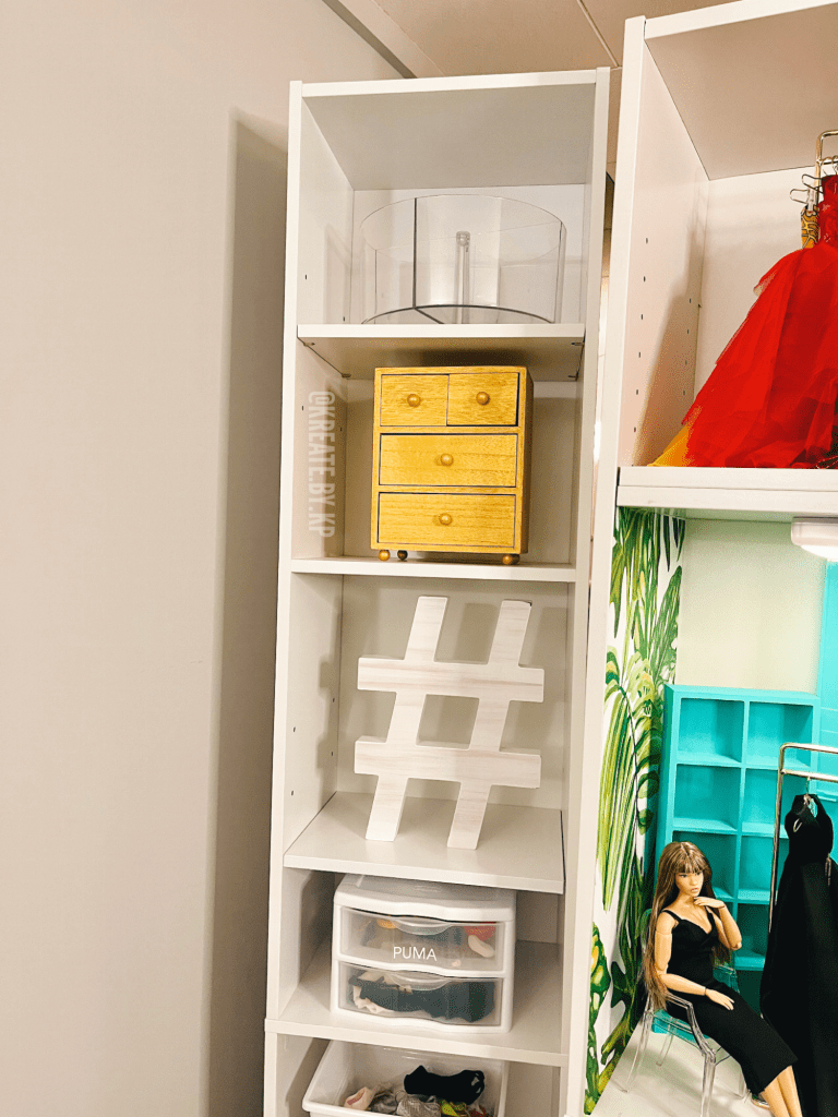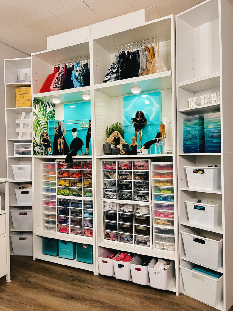 The second tower functions as storage for all of my Ken doll clothes, shoes and accessories.
